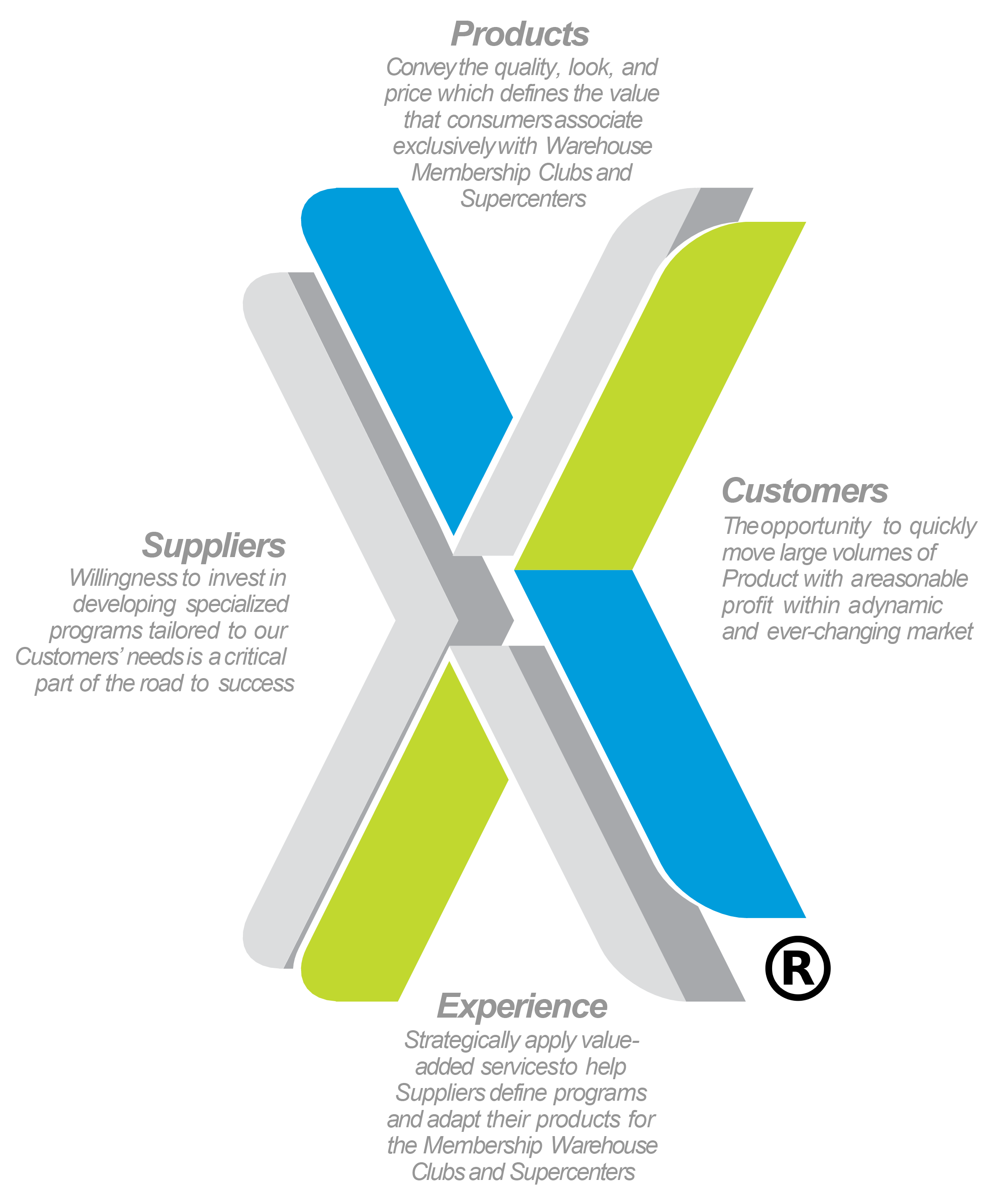 Xperience Marketing was incorporated in June of 2002 by Vinny Lucido with the mission to provide high-level sales and marketing services to a select number of qualified Suppliers. With over 100 years combined experience in the Membership Warehouse and Supercenter Industries, our team is driven to succeed. Our core philosophy is to “dig deep” with our represented Suppliers to identify as many opportunities as possible. It is our goal to penetrate multiple Customer departments and categories and diversify product lines providing stability and security for our Suppliers and Customers.